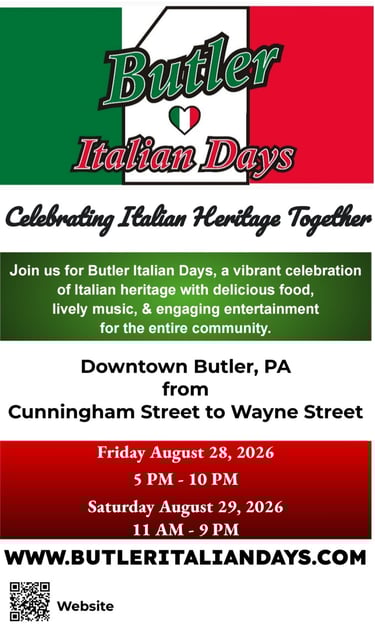 Butler Italian Days will be a vibrant celebration of our Italian heritage with delicious food, lively music, and engaging entertainment for the entire community on August 28-29, 2026.