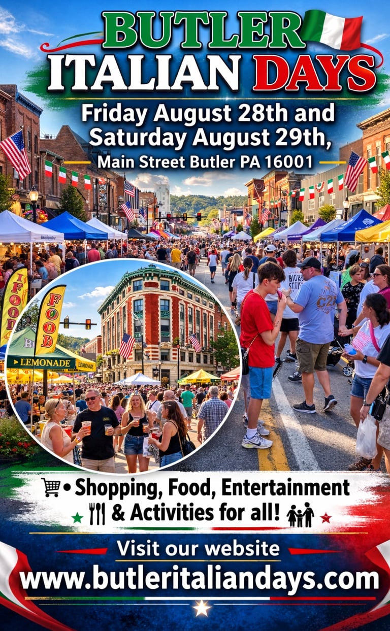 Butler Italian Days will be a vibrant celebration of our Italian heritage with delicious food, lively music, and engaging entertainment for the entire community on August 28-29, 2026.